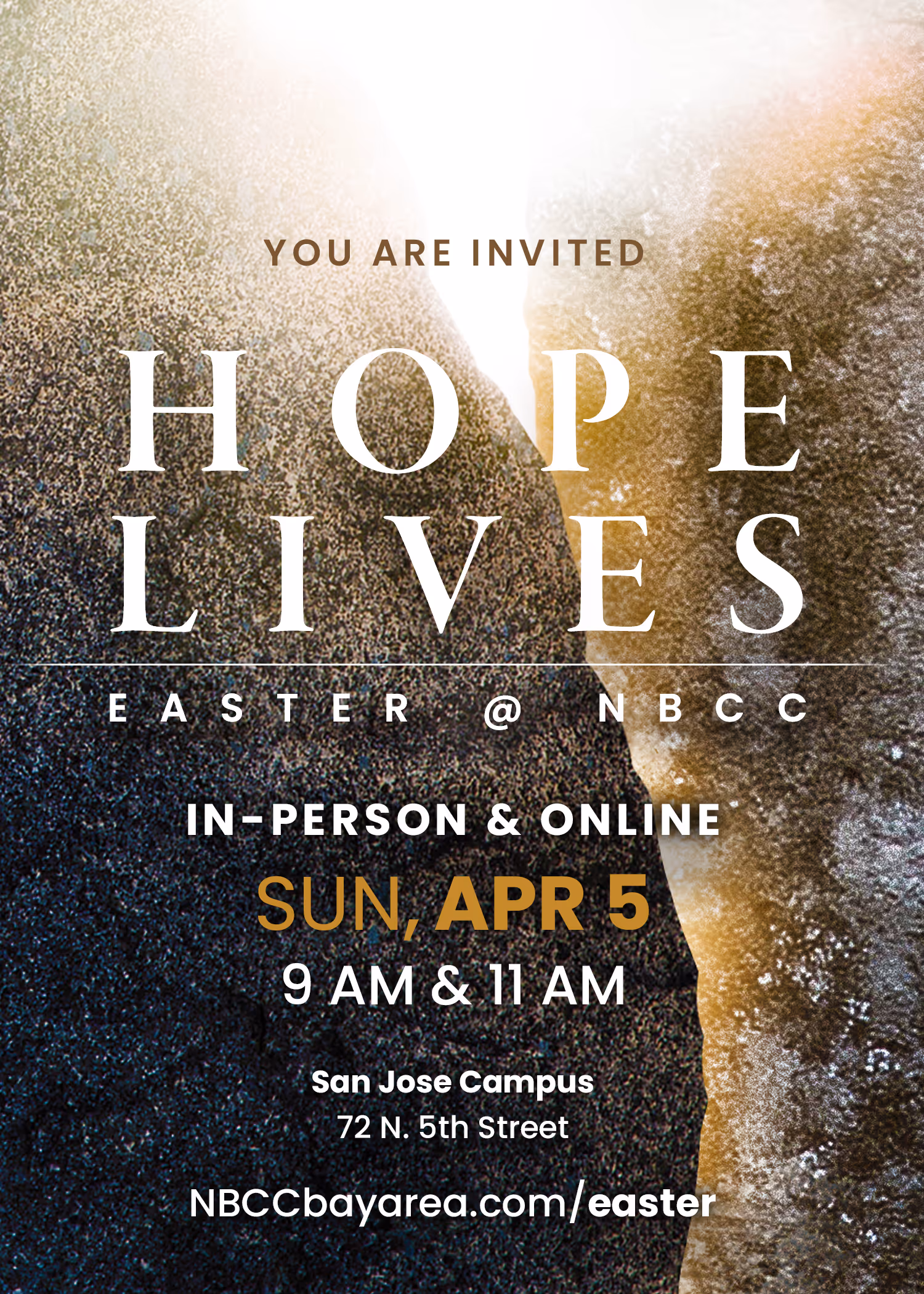 Help us spread the word about our Easter Celebration! Just click any of the digital invitations below to download, then share them on social media or send them to your family and friends. Don't forget to tag us on social media using #NBCCEaster2026.